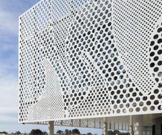 穿孔鋁單板是鋁單板的一種細化產品。具有良好的加工性能,其穩定的特性為板面加工提供了多種類別的選擇,色彩多樣,且能夠適應多類較為復雜的形狀設計。其良好的加工性能方便了 人員將其加工成為多種形式的線條。所以在選擇上,穿孔鋁單板為設計人員提供了一個更為 豐富的設計創想空間。