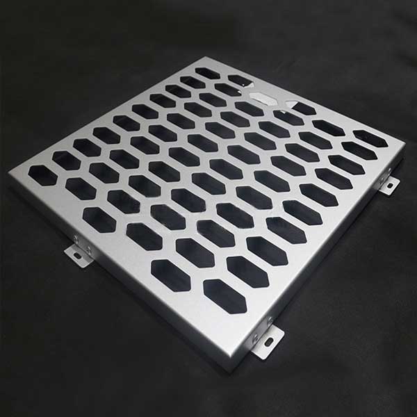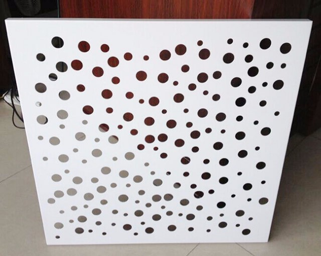 與常規(guī)鋁單板相比,沖孔鋁單板的特征就是表面形狀各異的沖孔(包括圓孔、方孔、五角星、六邊形孔等),裝飾效果突出,也能夠在一定程度上起到降低噪音的作用。集裝飾性與實(shí)用性于一體,沖孔鋁單板在工程裝飾中使用的越來越多。